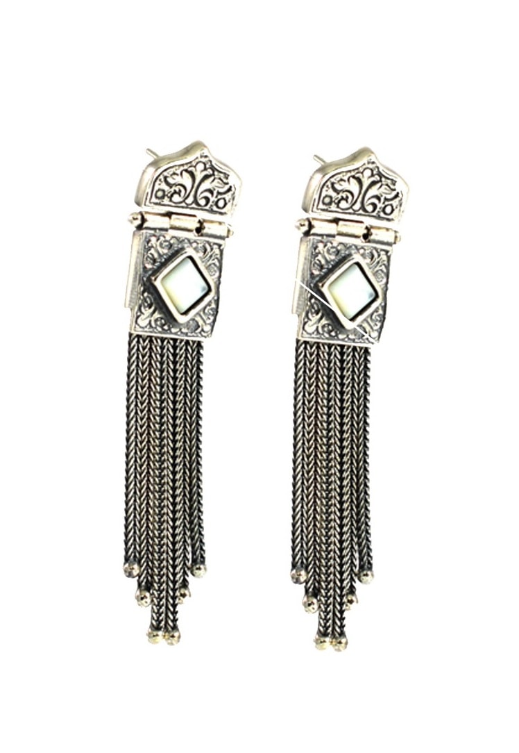 Ασημένια 925 αλυσιδωτά καρφωτά σκουλαρίκια με φίλντισι πέτρα ! Παραδοσιακά σκουλαρίκια με εντυπωσιακό αποτέλεσμα!