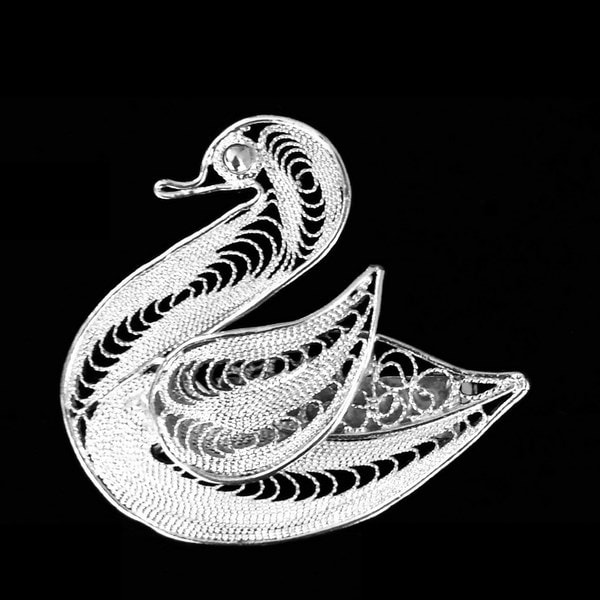 Ασημένια 925 καρφίτσα πάπια με υψηλή τεχνική φιλιγκράν. Χειροποίητη καρφίτσα με κλασσικό, παραδοσιακό σχεδιασμό! Ιδιαίτερη καρφίτσα για επίσημες καταστάσεις!
