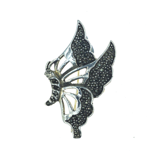 Ασημένια 925 καρφίτσα σε σχήμα πεταλούδας με πέτρες από μαρκασίτη ! Ιδιαίτερη καρφίτσα για επίσημες καταστάσεις!