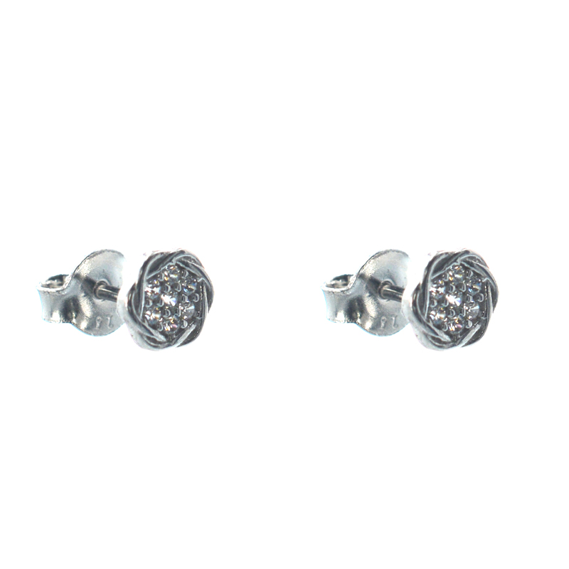 Ασημένια 925 καρφωτά σκουλαρίκια με λευκές πέτρες ζιργκόν. Προσθέστε χάρη και λάμψη στην εμφάνισή σας με αυτό το μοντέρνο ζευγάρι σκουλαρικιών.