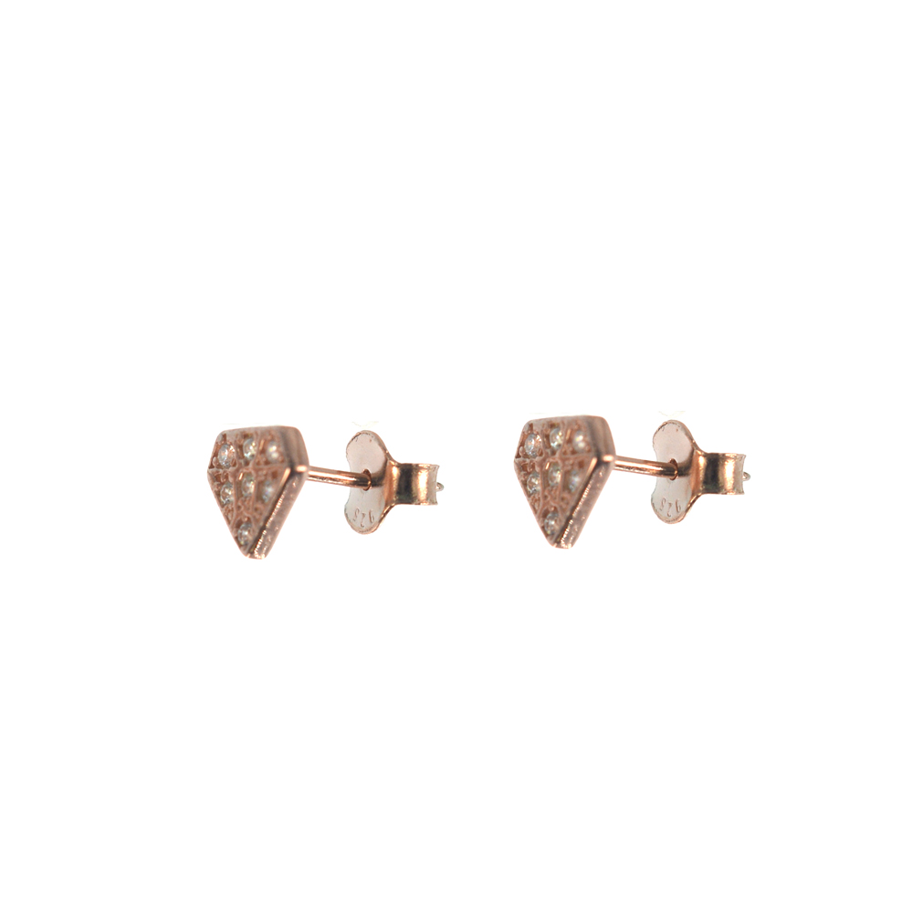 Ασημένια 925 καρφωτά σκουλαρίκια σε ροζ χρυσό με λευκό ζιργκόν. Προσθέστε χάρη και λάμψη στην εμφάνισή σας με αυτό το μοντέρνο ζευγάρι σκουλαρικιών.