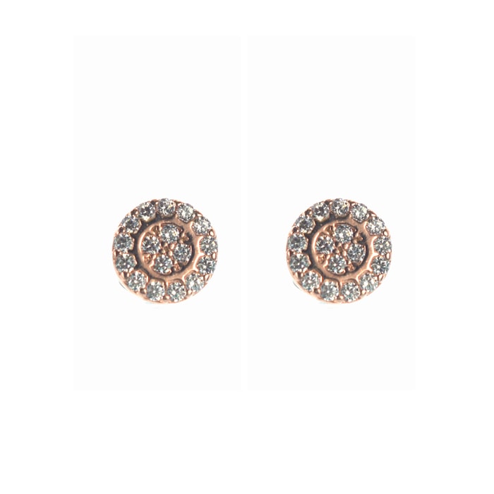 Ασημένια 925 καρφωτά σκουλαρίκια σε ροζ χρυσό με λευκό ζιργκόν. Προσθέστε χάρη και λάμψη στην εμφάνισή σας με αυτό το μοντέρνο ζευγάρι σκουλαρικιών.