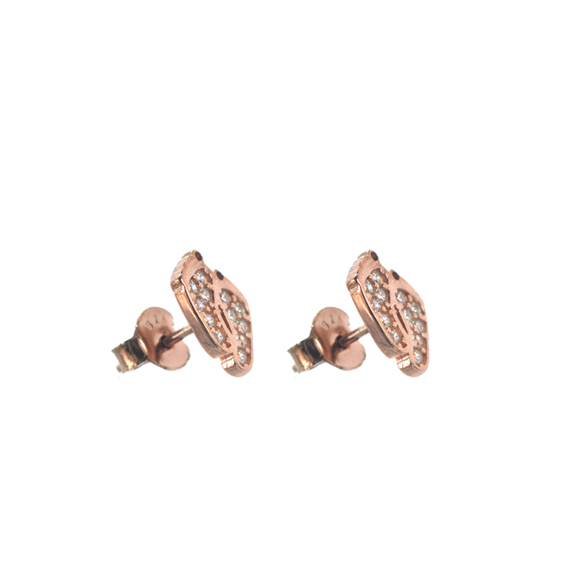 Ασημένια 925 καρφωτά σκουλαρίκια πατούσες σε ροζ χρυσό με λευκό ζιργκόν. Προσθέστε χάρη και λάμψη στην εμφάνισή σας με αυτό το μοντέρνο ζευγάρι σκουλαρικιών.