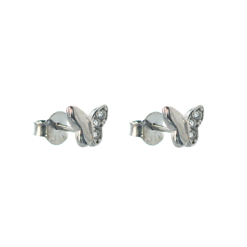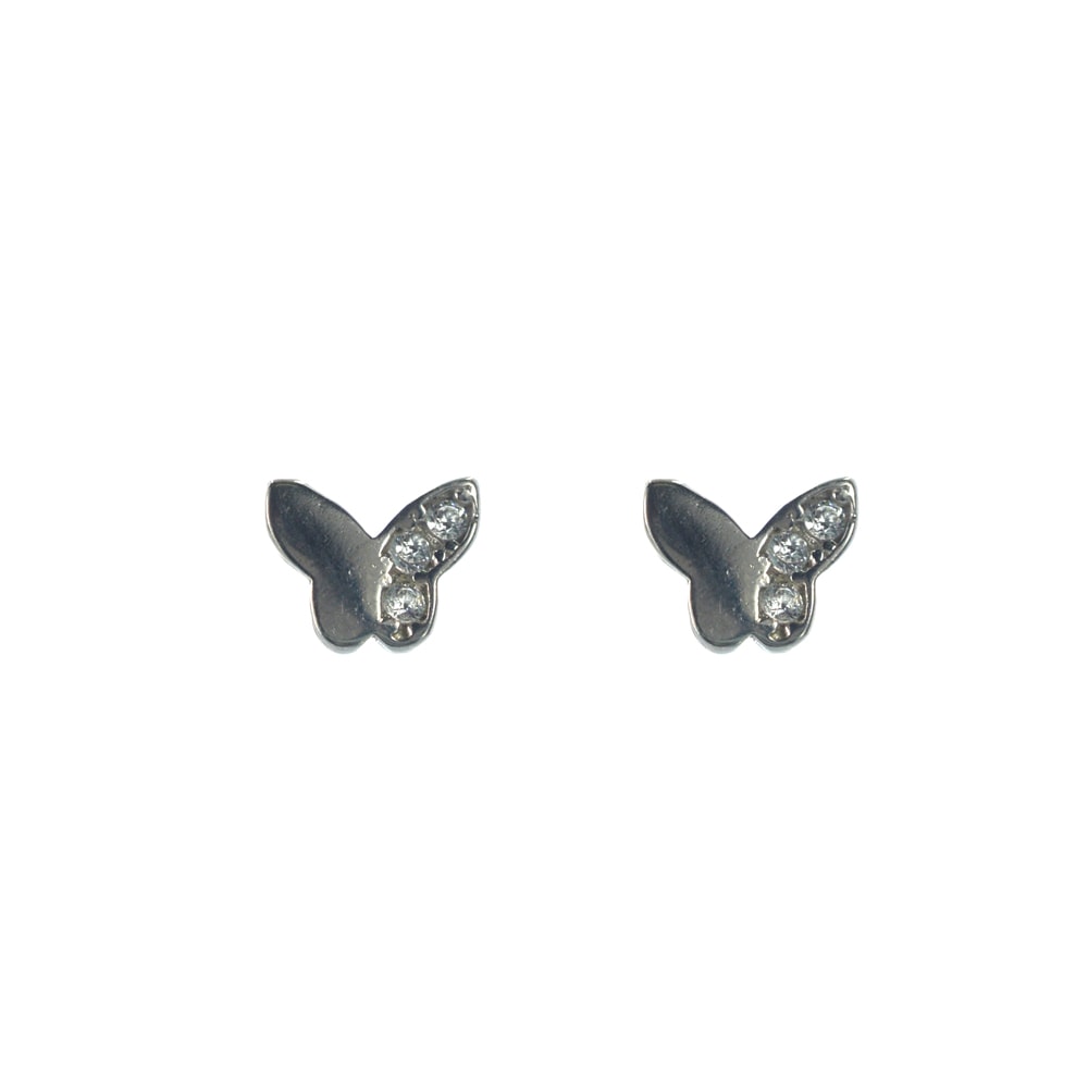 Ασημένια 925 καρφωτά σκουλαρίκια πεταλούδες με λευκές πέτρες ζιργκόν. Προσθέστε χάρη και λάμψη στην εμφάνισή σας με αυτό το μοντέρνο ζευγάρι σκουλαρικιών.
