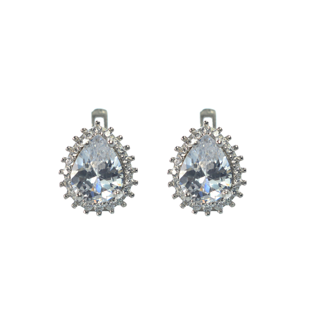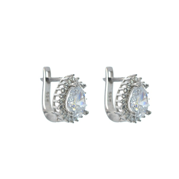 Ασημένια 925 κρεμαστά σκουλαρίκια σε σχήμα σταγόνας με λευκές πέτρες ζιργκόν. Μοντέρνα, λαμπερά σκουλαρίκια για κάθε σας εμφάνιση. Ιδανικά για δώρο στον εαυτό σας ή σε κάποιο αγαπημένο σας πρόσωπο.