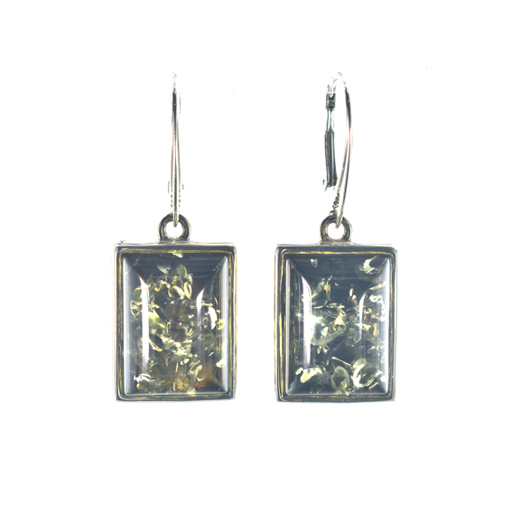Ασημένια 925 κρεμαστά σκουλαρίκια με πράσινο κεχριμπάρι Κολομβίας. Χειροποίητα σκουλαρίκια με κλασικό σχεδιασμό, κατάλληλα για κάθε περίσταση. Διατίθεται πιστοποίηση αυθεντικότητας κεχριμπαριού!