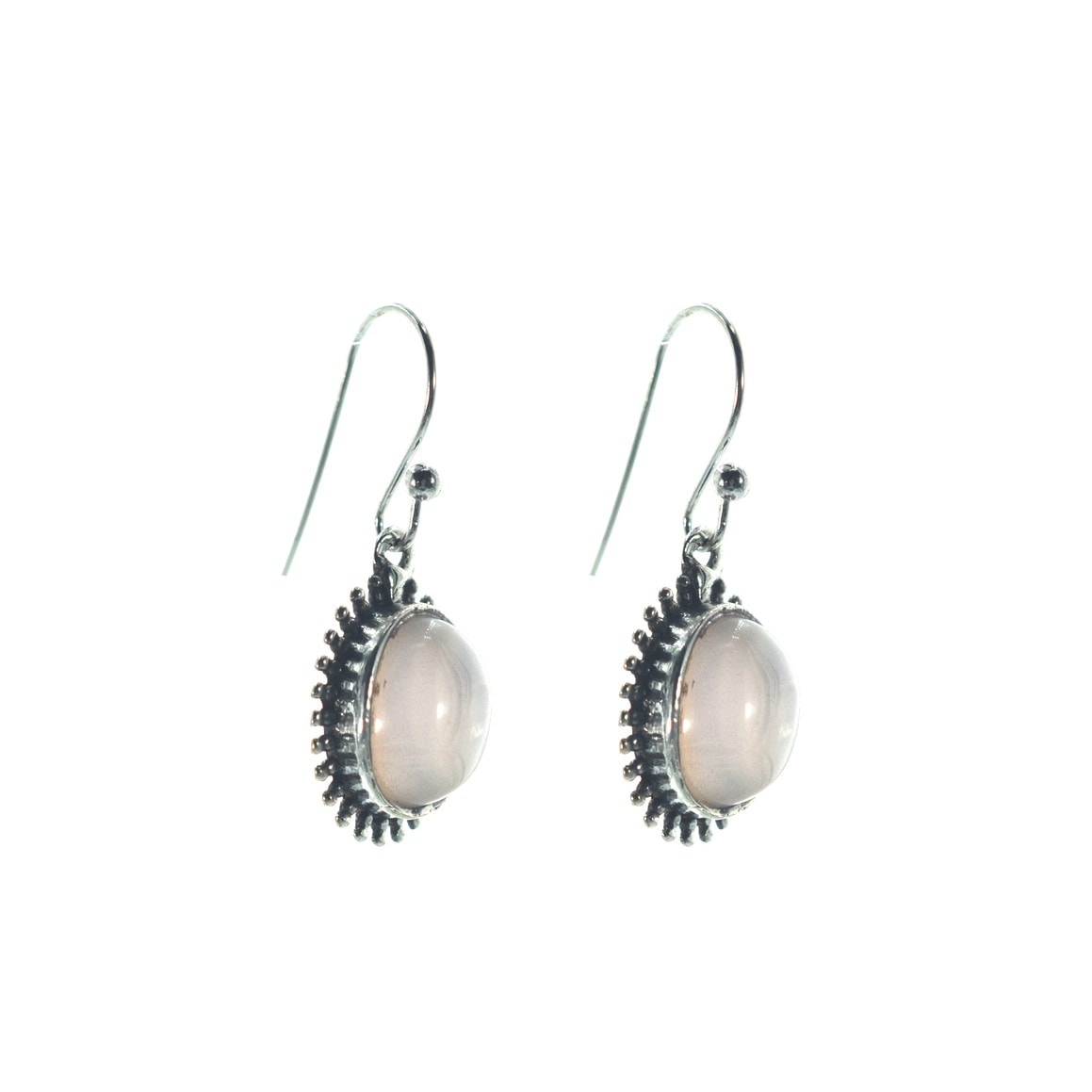 Ασημένια 925 κρεμαστά σκουλαρίκια με ροζ χαλαζία