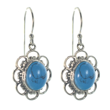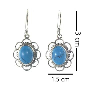 Ασημένια 925 κρεμαστά σκουλαρίκια με τιρκουάζ. Ασημένια σκουλαρίκια σε σχήμα λουλουδιού. Προσθέστε χρώμα στις εμφανίσεις σας με τον πιο διακριτικό και κομψό τρόπο.