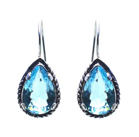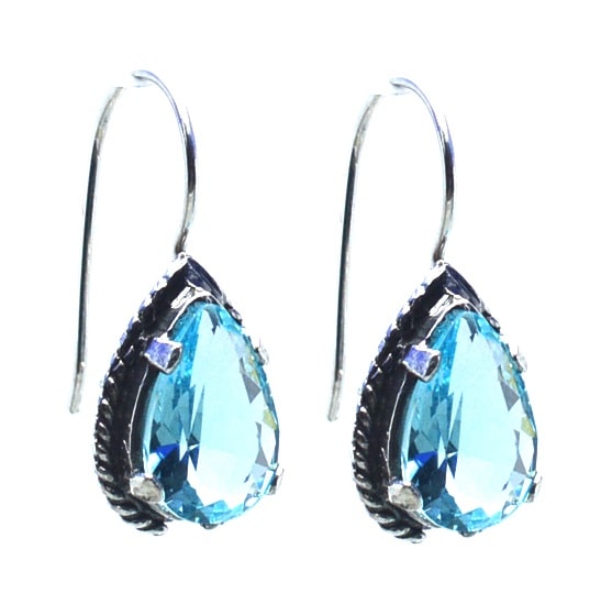 Ασημένια 925 σκουλαρίκια με άκουα μαρίνα ζιργκόν. Χειροποίητα σκουλαρίκια με κλασσικό, παραδοσιακό σχεδιασμό! Ευκολοφόρετα σκουλαρίκια για καθημερινή χρήση!