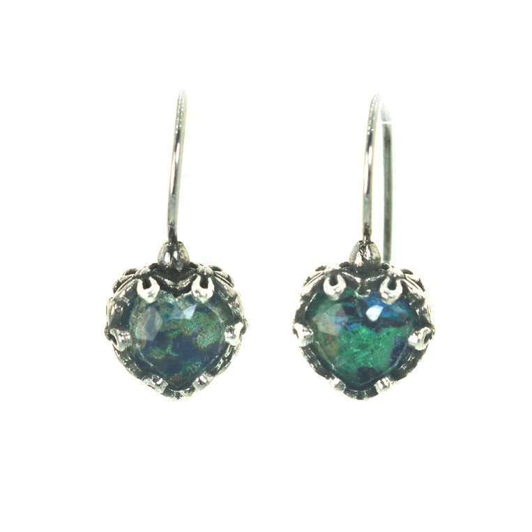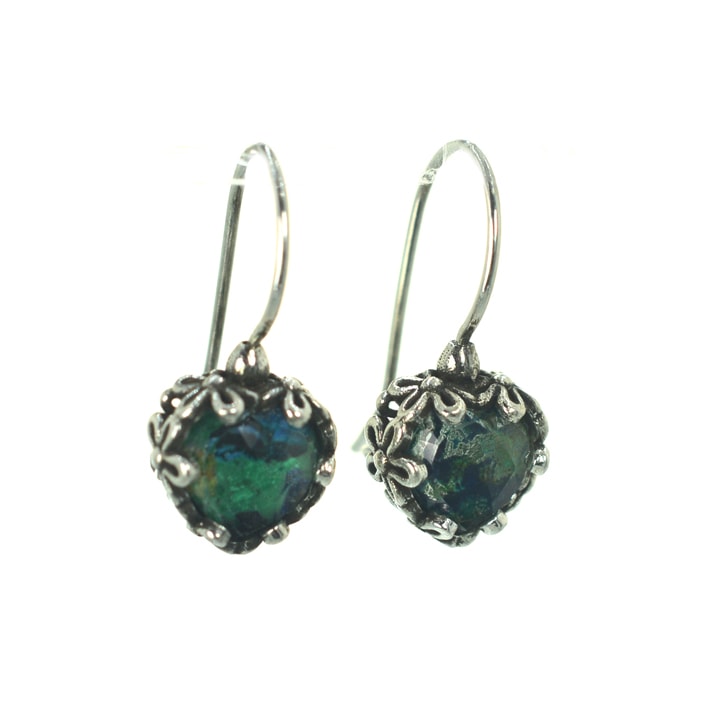 Ασημένια 925 σκουλαρίκια καρδιές με αζουρίτη doublet πέτρες υψηλής ποιότητας. Παραγωγή κι αποκλειστικότητα από την Silverfamily Moschos από την συλλογή Doublete Collection .