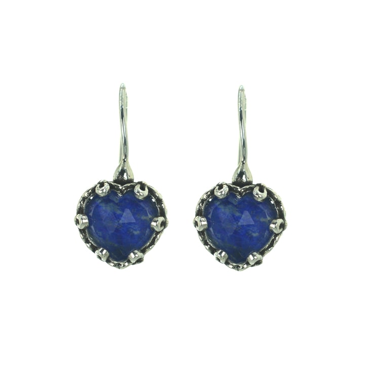 Ασημένια 925 σκουλαρίκια καρδιές με λάπις doublet πέτρες υψηλής ποιότητας. Παραγωγή κι αποκλειστικότητα από την Silverfamily Moschos από την συλλογή Doublete Collection .
