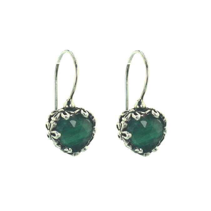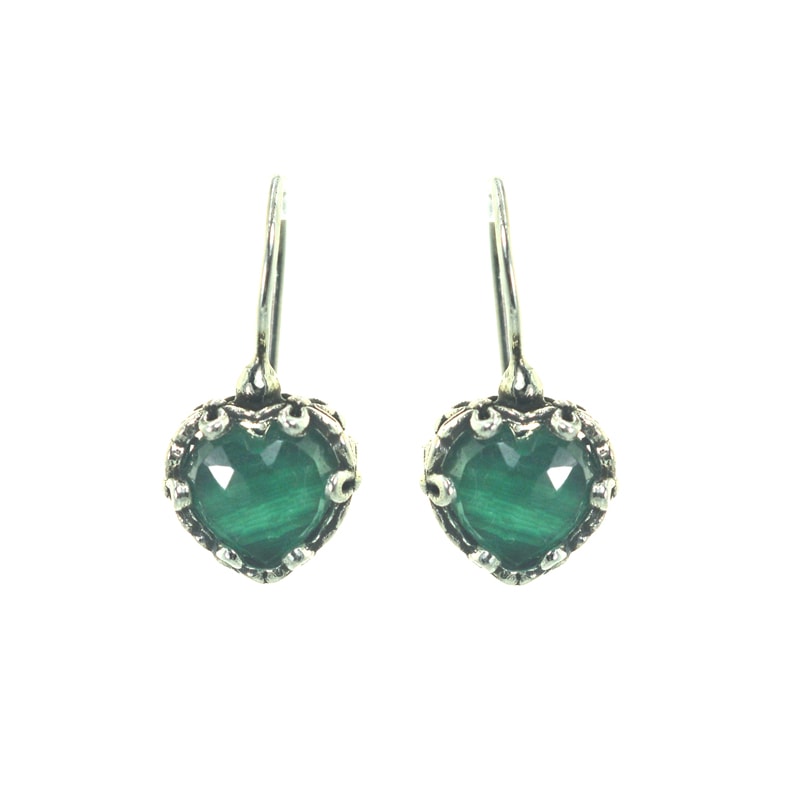 Ασημένια 925 σκουλαρίκια καρδιές με μαλαχίτη doublet πέτρες υψηλής ποιότητας. Παραγωγή κι αποκλειστικότητα από την Silverfamily Moschos από την συλλογή Doublete Collection .