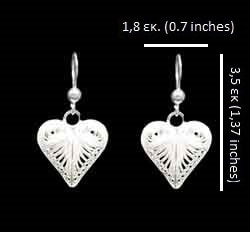 Ασημένια 925 σκουλαρίκια καρδιές με υψηλή τεχνική φιλιγκράν. Χειροποίητα σκουλαρίκια με κλασσικό, παραδοσιακό σχεδιασμό! Ευκολοφόρετα σκουλαρίκια για καθημερινή χρήση!