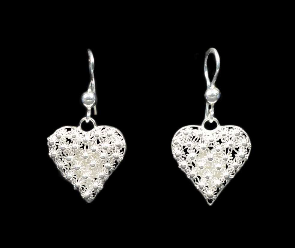 Ασημένια 925 σκουλαρίκια καρδιές με υψηλή τεχνική φιλιγκράν. Χειροποίητα σκουλαρίκια με κλασσικό, παραδοσιακό σχεδιασμό! Ευκολοφόρετα σκουλαρίκια για καθημερινή χρήση!
