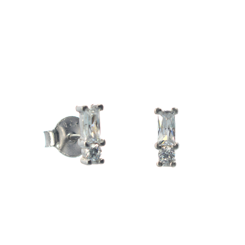 Ασημένια 925 σκουλαρίκια καρφωτά με μικρές, λευκές πέτρες ζιργκόν. Διακριτικά και μοντέρνα  σκουλαρίκια για λάμψη και χάρη σε κάθε σας εμφάνιση. Ιδανικά για δώρο στον εαυτό σας ή σε κάποιο αγαπημένο σας πρόσωπο.