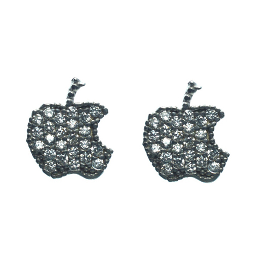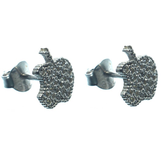 Ασημένια 925 καρφωτά επιπλατινωμένα σκουλαρίκια μήλα με ζιρκόν πέτρες. Μοντέρνα , ευκολοφόρετα σκουλαρίκια για κάθε περίσταση !
