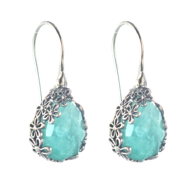 Ασημένια 925 σκουλαρίκια με αμαζονίτη