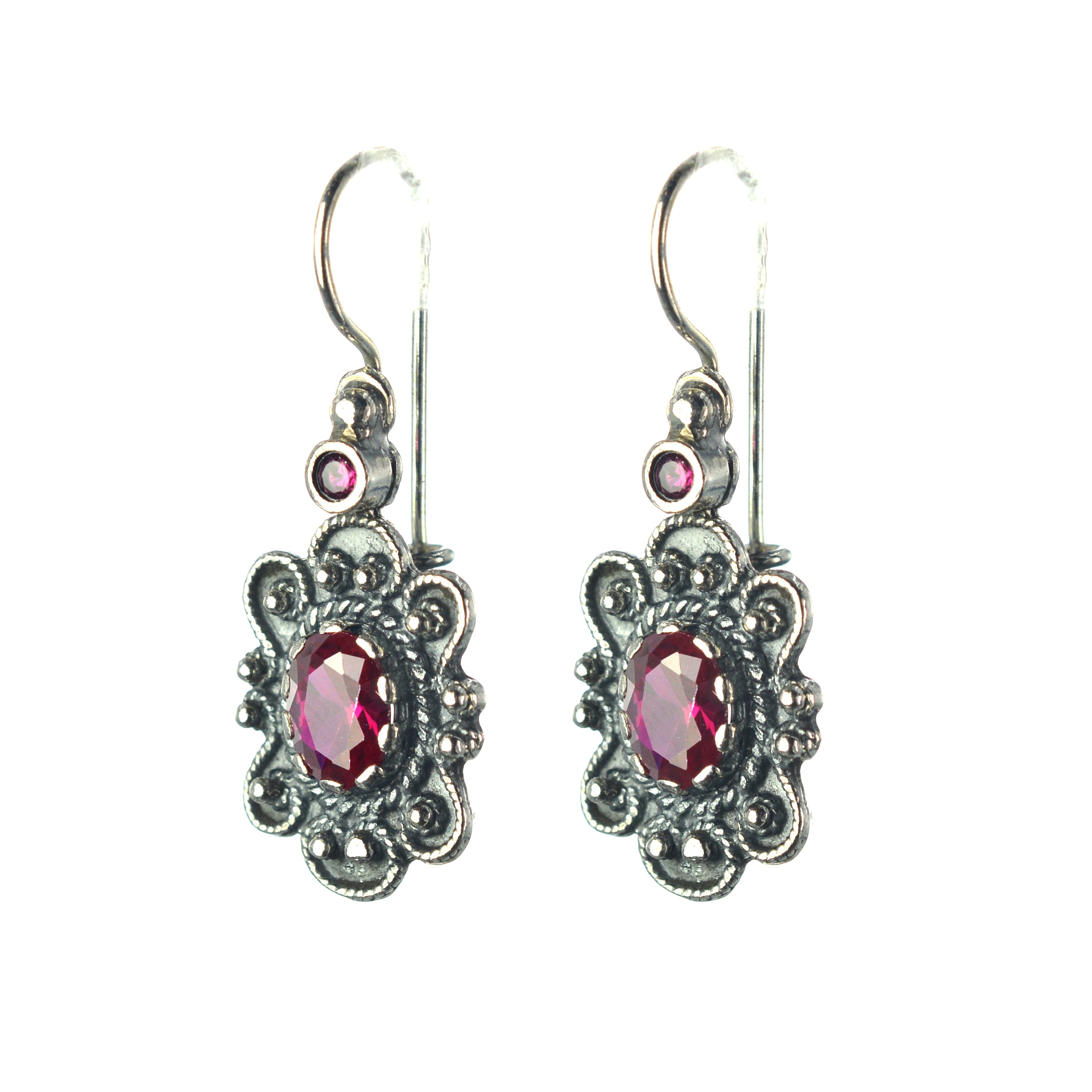 Ασημένια 925 σκουλαρίκια με ζιργκόν. Κρεμαστά σκαλιστά σκουλαρίκια με φούξια ζιργκόν από οξειδωμένο ασήμι 925. Ανακαλύψτε σήμερα όλη τη συλλογή και κάντε το ομορφότερο δώρο στον εαυτό σας.