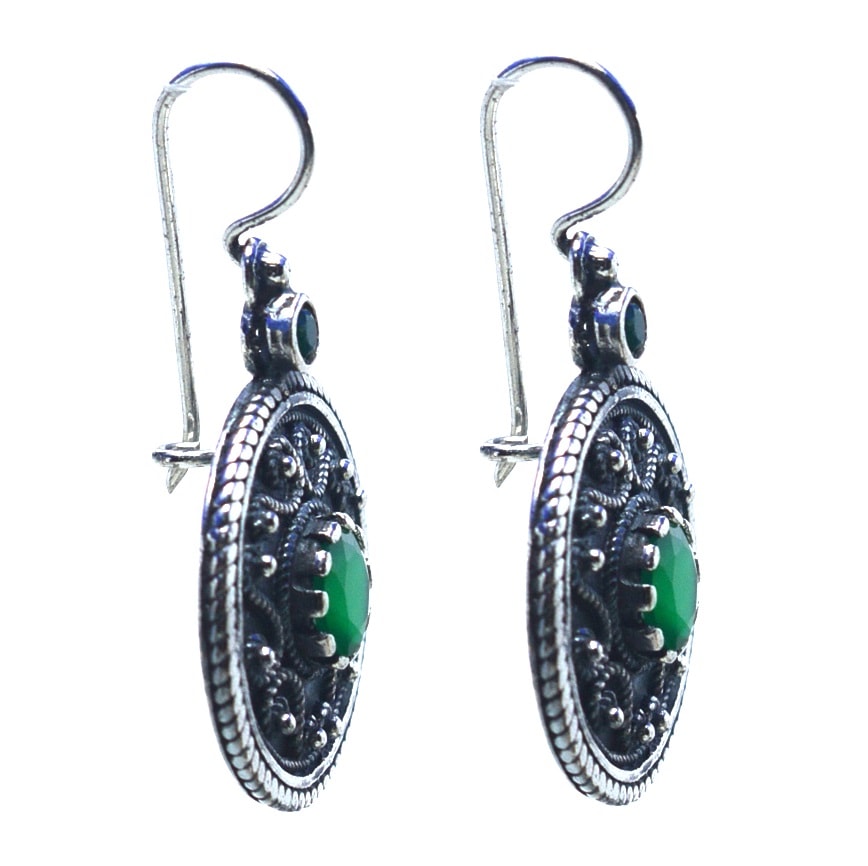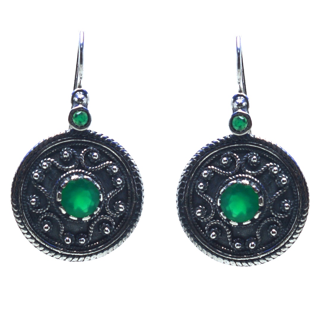 Ασημένια 925 σκουλαρίκια με πράσινες ζιργκόν πέτρες. Χειροποίητα σκουλαρίκια με κλασσικό, παραδοσιακό σχεδιασμό! Ευκολοφόρετα σκουλαρίκια για καθημερινή χρήση!
