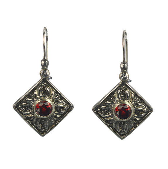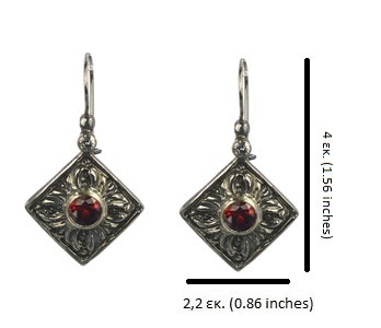 Ασημένια 925 σκουλαρίκια με κόκκινες ζιργκόν πέτρες σε σχήμα ρόμβου . Αποκλειστική Παραγωγή της Silverfamily Moschos ! Χειροποίητα σκουλαρίκια με κλασσικό, παραδοσιακό σχεδιασμό! Ευκολοφόρετα σκουλαρίκια για καθημερινή χρήση!
