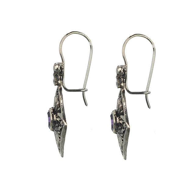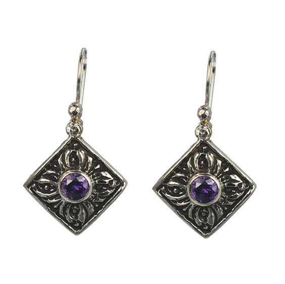 Ασημένια 925 σκουλαρίκια με μωβ ζιργκόν πέτρες σε σχήμα ρόμβου . Αποκλειστική Παραγωγή της Silverfamily Moschos ! Χειροποίητα σκουλαρίκια με κλασσικό, παραδοσιακό σχεδιασμό! Ευκολοφόρετα σκουλαρίκια για καθημερινή χρήση!