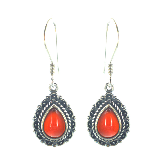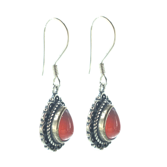 Ασημένια 925 σκουλαρίκια με κορνεόλη