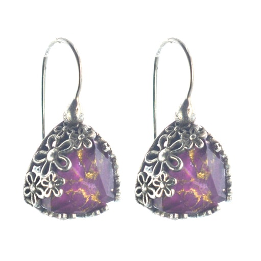 Ασημένια 925 σκουλαρίκια με μωβ τιρκουάζ