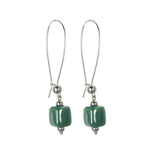 Ασημένια 925 σκουλαρίκια με πράσινες χάντρες ! Μοντρέρνα σκουλαρίκια με χάντρα κεραμική σε σχήμα κύβου ! Αποκλειστική δημιουργία της Silverfamily Moschos ! Ευκολοφόρετα σκουλαρίκια για καθημερινή χρήση με μοντέρνο σχεδιασμό !