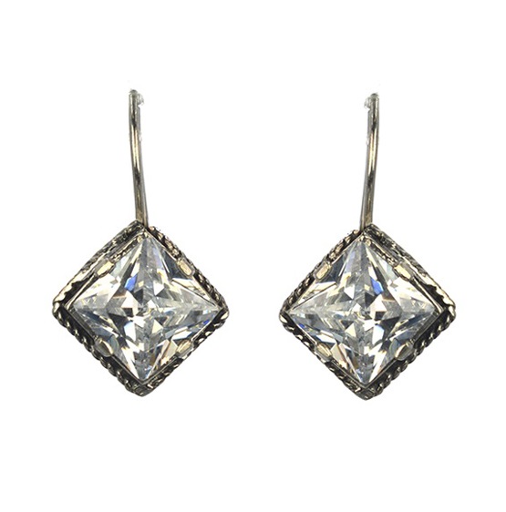Ασημένια 925 σκουλαρίκια ρόμβοι με ζιργκόν