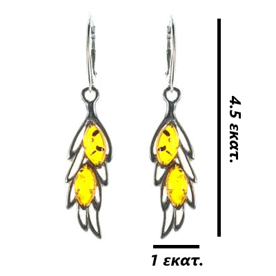Ασημένια 925 σκουλαρίκια φτερά με κεχριμπάρι