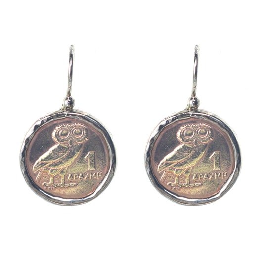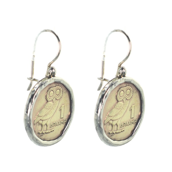 Ασημένια 925 σκουλαρίκια 1 Δραχμή. Χειροποίητα σκαλιστά σκουλαρίκια με αληθινό νόμισμα της 1 Δραχμής. Ιδιαίτερα σκουλαρίκια που θα σας θυμίζουν ένα σημαντικό κομμάτι της ιστορίας μας! Από τη συλλογή “Ελευθερία” της Silver Family Moschos.