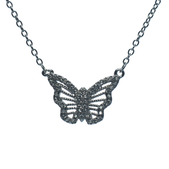 ΚολιέΑσημένιο κολιέ πεταλούδα με ζιργκόν πέτρες