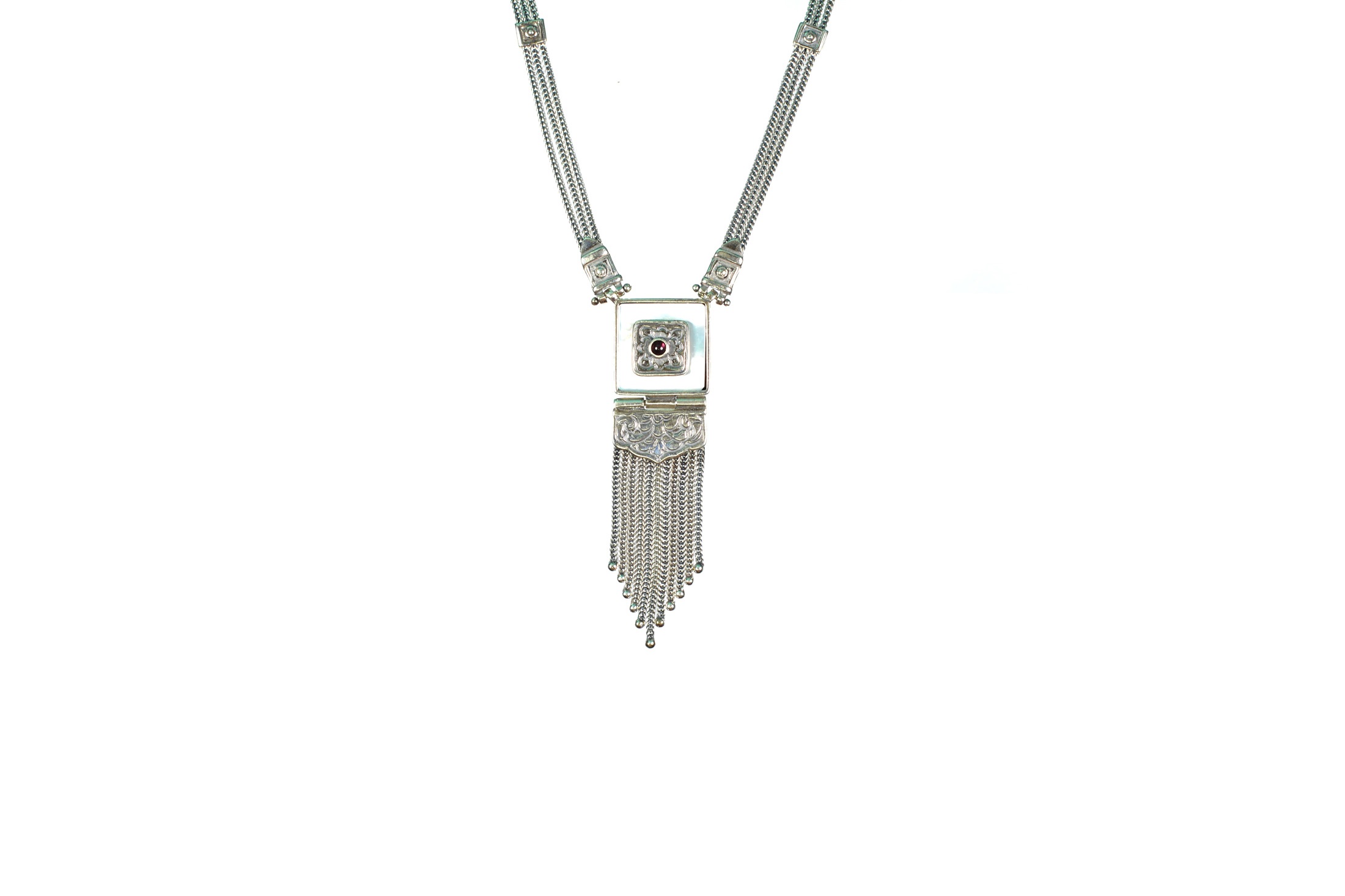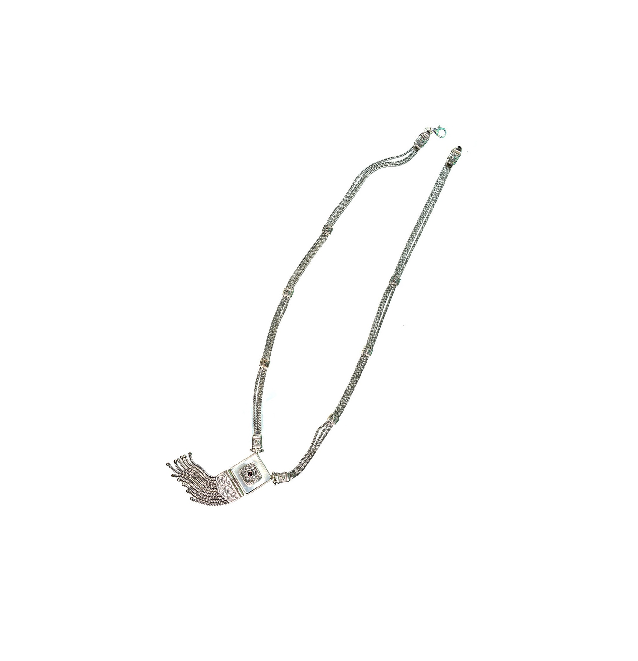 Ασημένιο 925 οξειδωμένο αλυσιδωτό κολιέ με φίλντισι και με γρανάδες! Παραδοσιακό κολιέ με εντυπωσιακό αποτέλεσμα!