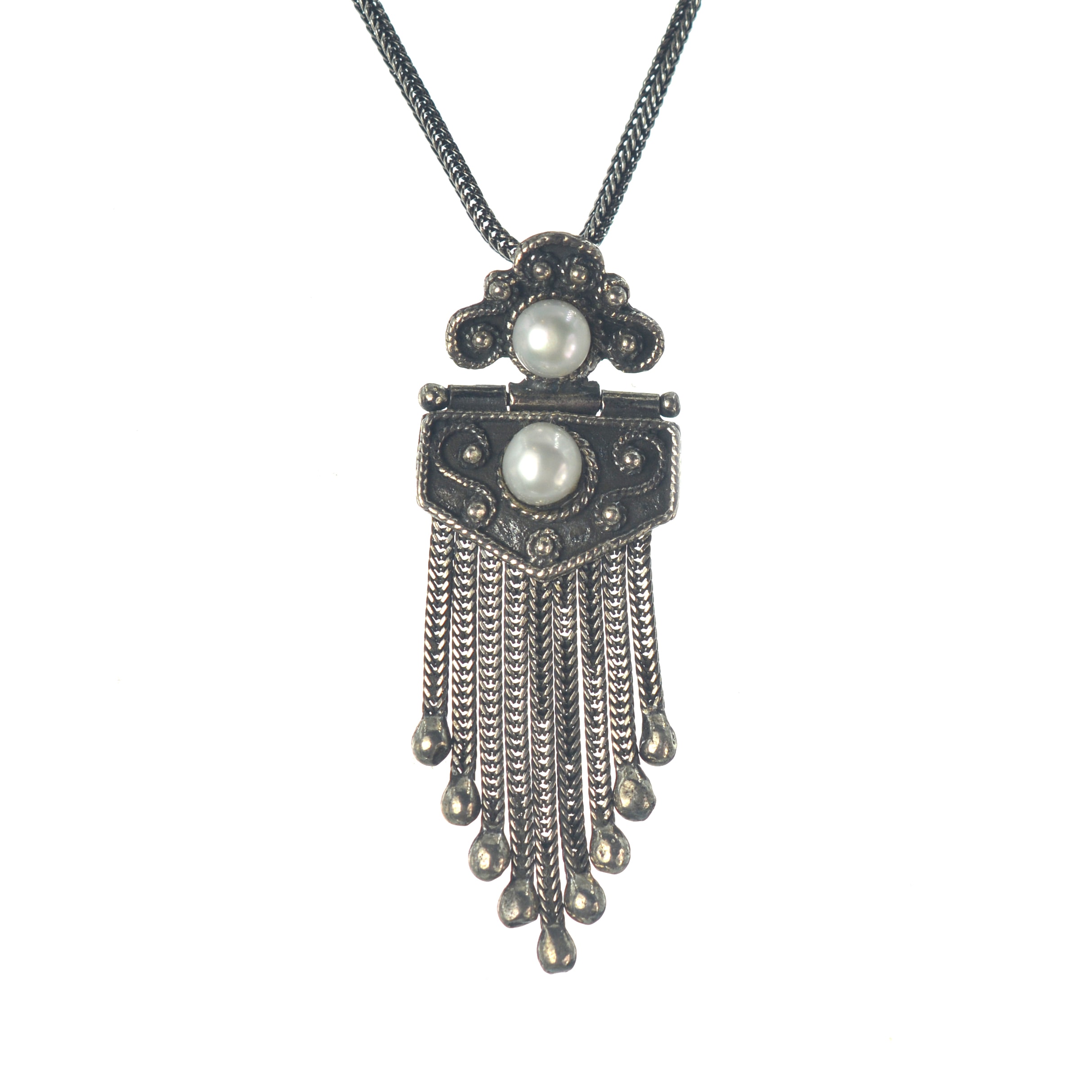 Ασημένιο 925 αλυσιδωτό μενταγιόν με μαργαριτάρια. Μοναδικό κομμάτι με κομψό σκάλισμα και παραδοσιακό γιαννιώτικο σχεδιασμό, ιδανικό για ξεχωριστές περιστάσεις. Ανακαλύψτε όλη τη συλλογή στην ιστοσελίδα μας και κάντε το ομορφότερο δώρο στον εαυτό σας. Η τιμή περιλαμβάνει και την αλυσίδα 50 εκατ.
