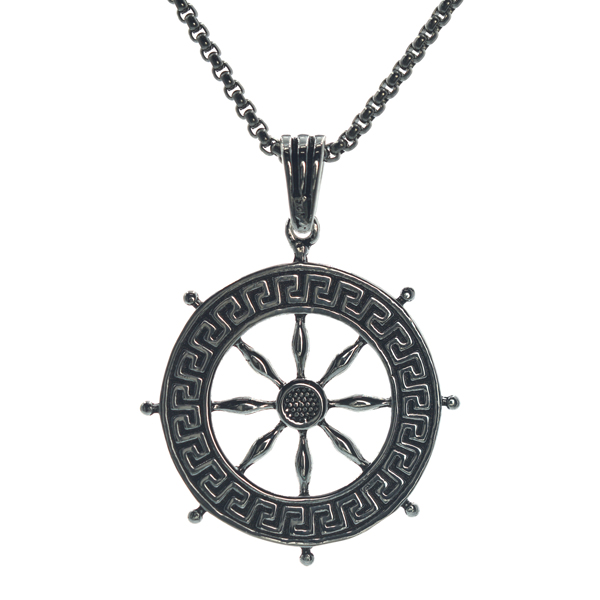 Ασημένιο 925 αντρικό μενταγιόν με πηδάλιο πλοίου. Σκαλιστό κολιέ για τον σύγχρονο άντρα, με δώρο την ατσαλένια αλυσίδα 60 εκατοστών!