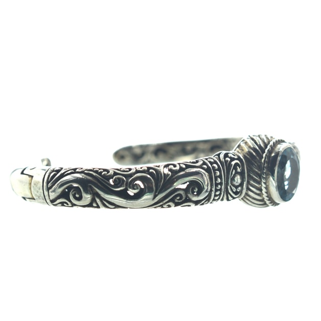 Ασημένιο 925 βραχιόλι με ακουμαρίνα . Παραδοσιακό σκαλιστό χειροποίητο βραχιόλι με ακουμαρίνα. Σπαστό βραχιόλι με άριστο μηχανισμό ώστε να ανοιγοκλείνει με ευκολία. Ιδιαίτερο βραχιόλι για τη προσωπική σας συλλογή!