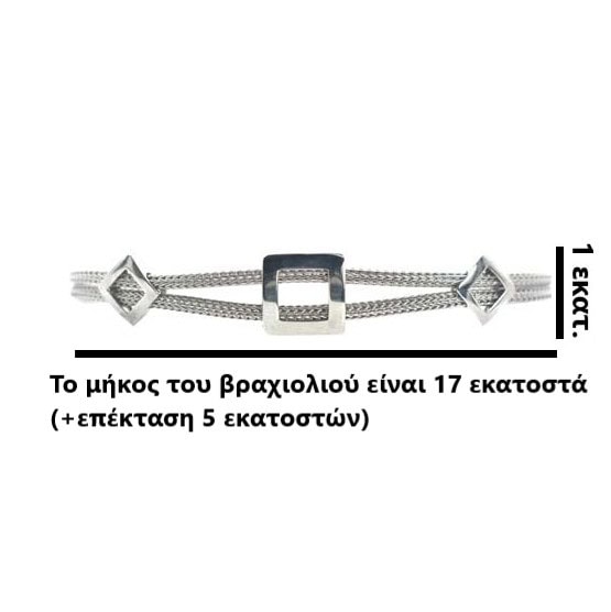 Ασημένιο 925 βραχιόλι με διπλή στρώση ροδίωσης. Κομψό, λιτό βραχιόλι, ιδανικό για καθημερινές ή επίσημες περιστάσεις. Συνολικό μήκος βραχιολιού: 22 εκατοστά (17 εκατοστά + επέκταση 5 εκατοστών).