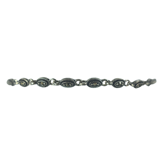 Κομψό βραχιόλι από ασήμι 925, διακοσμημένο με λαμπερούς φυσικούς μαρκασίτες. Ιδανικό για καθημερινή χρήση αλλά και για ιδιαίτερες εμφανίσεις, προσθέτει διακριτική πολυτέλεια και διαχρονικό στυλ στο look σας.