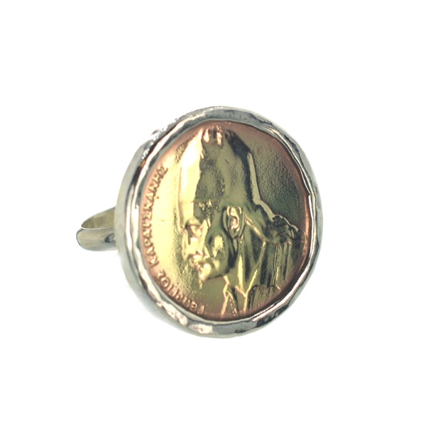 Ασημένιο 925 δαχτυλίδι Καραϊσκάκης. Σκαλιστό δαχτυλίδι με αληθινό νόμισμα όπου απεικονίζεται ο Καραϊσκάκης, ένας από τους αγωνιστές της Ελληνικής Επανάστασης του 1821. Ιδιαίτερο δαχτυλίδι που θα σας θυμίζει ένα σημαντικό κομμάτι της ιστορίας μας! Από τη συλλογή “Ελευθερία” της Silver Family Moschos.