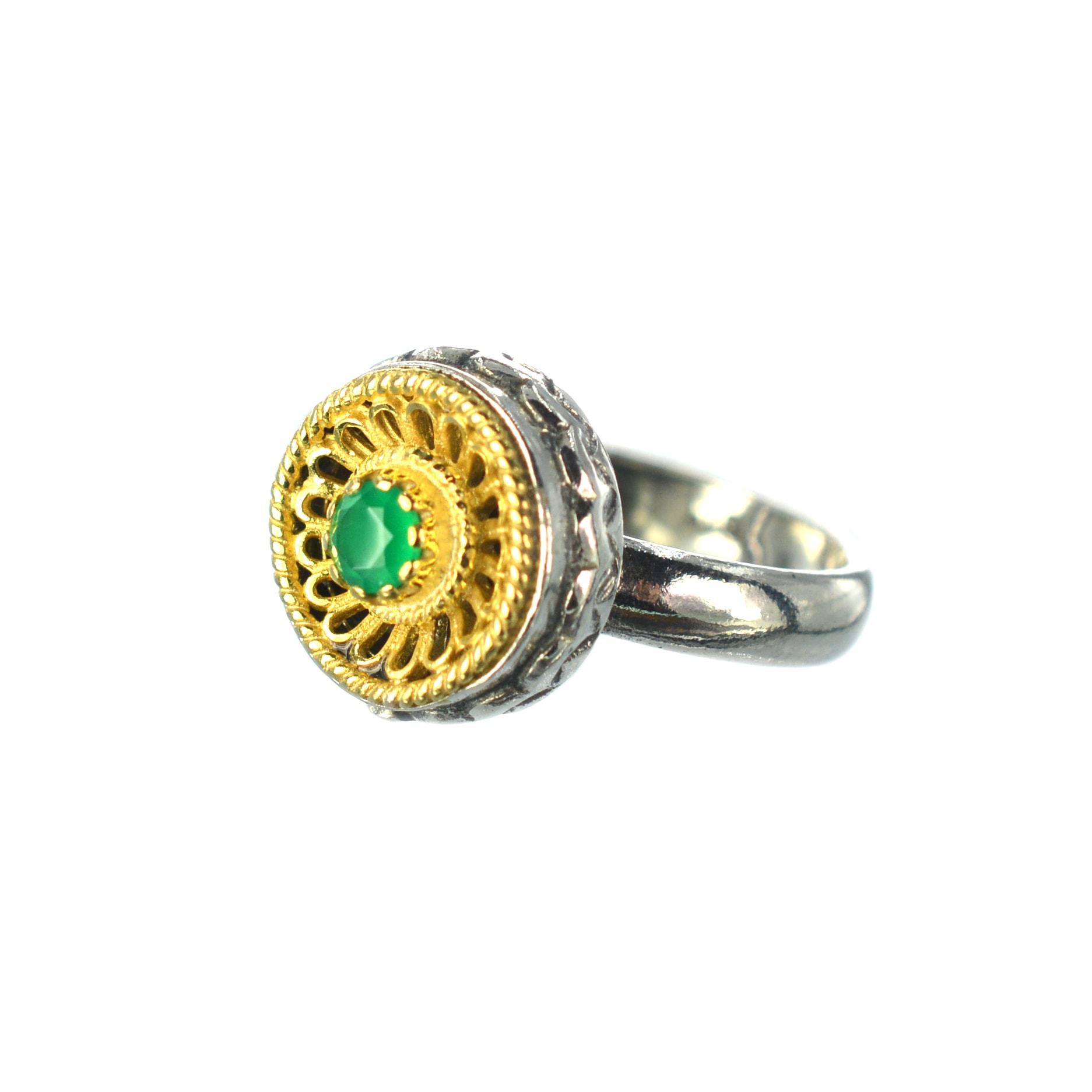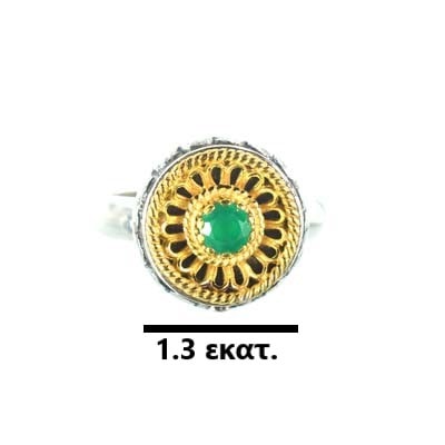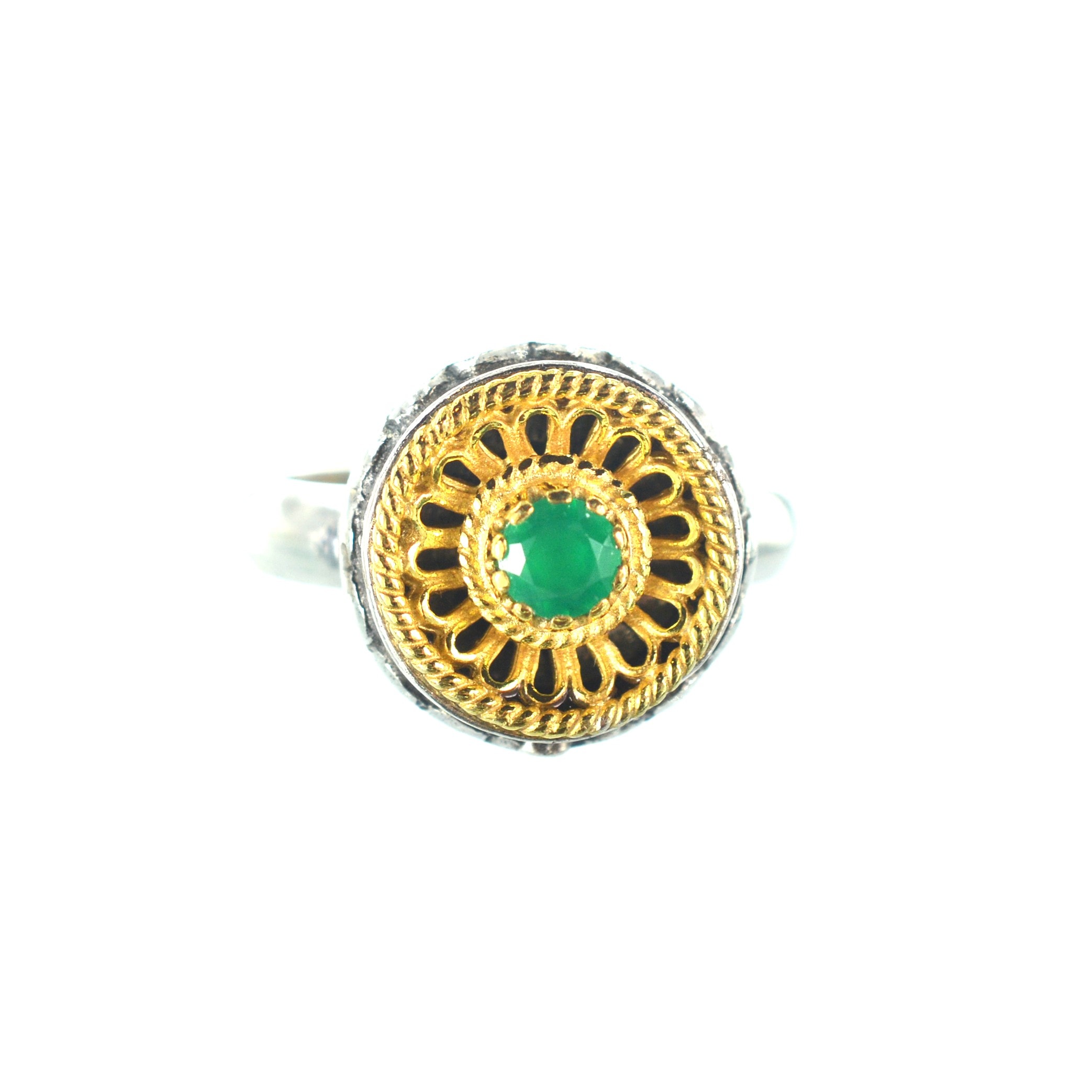Ασημένιο 925 δαχτυλίδι με πράσινο ζιργκόν, κομψό σκάλισμα και επίστρωση χρυσού 14Κ. Ανακαλύψτε όλα τα δαχτυλίδια της συλλογής μας και επιλέξτε το αγαπημένο σας.
