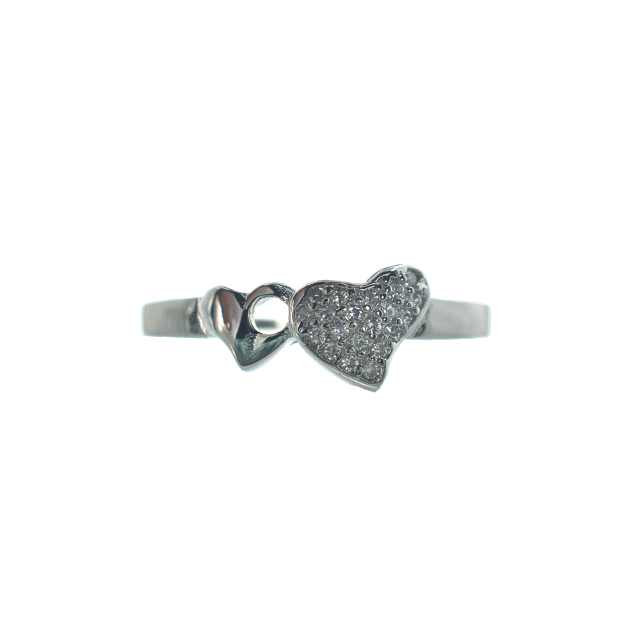 Ασημένιο 925 δαχτυλίδι με καρδιές και λευκό ζιργκόν. Μοντέρνο δαχτυλίδι με δύο καρδιές, μια εκ των οποίων γεμάτη με μικρές λευκές πέτρες ζιργκόν. Το συγκεκριμένο δαχτυλίδι διατίθεται σε οποιοδήποτε νούμερο.