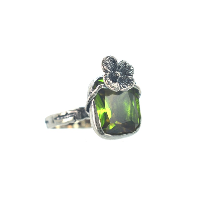 Ασημένιο 925 δαχτυλίδι με συνθετική τουρμαλίνη. Παραδοσιακό, χειροποίητο δαχτυλίδι με συνθετική τουρμαλίνη, που αλλάζει χρώμα ανάλογα με τον φωτισμό (ροζ, μωβ, κίτρινο, πράσινο), και ένα διακοσμητικό λουλούδι στη γωνία. Προσθέστε μοναδικό στυλ στις εμφανίσεις σας με αυτό το κομψό δαχτυλίδι. Ιδανικό δώρο για τον εαυτό σας ή κάποιο αγαπημένο σας πρόσωπο. Το συγκεκριμένο δαχτυλίδι διατίθεται σε οποιοδήποτε νούμερο.