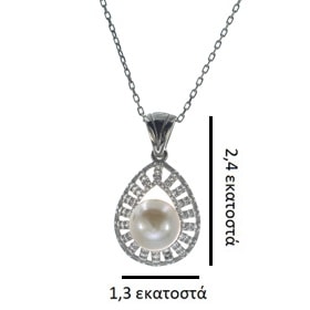 Ασημένιο 925 κολιέ με μαργαριτάρι. Διακριτικό μαργαριταρένιο κολιέ με πέτρες ζιργκόν. Ένα μοντέρνο κόσμημα για γυναίκες όλων των ηλικιών. Ιδανικό δώρο για γάμους, βαφτίσεις και ορκωμοσίες. Μοντέρνο σχέδιο με μαργαριτάρι για περισσότερη λάμψη στην εμφάνισή σας. Αναδείξτε το στυλ σας με τα μοντέρνα κοσμήματα από ασήμι 925 της συλλογής μας. Η ασημένια 925 αλυσίδα έχει μήκος 40 εκατοστά με επέκταση 5 εκατοστών.