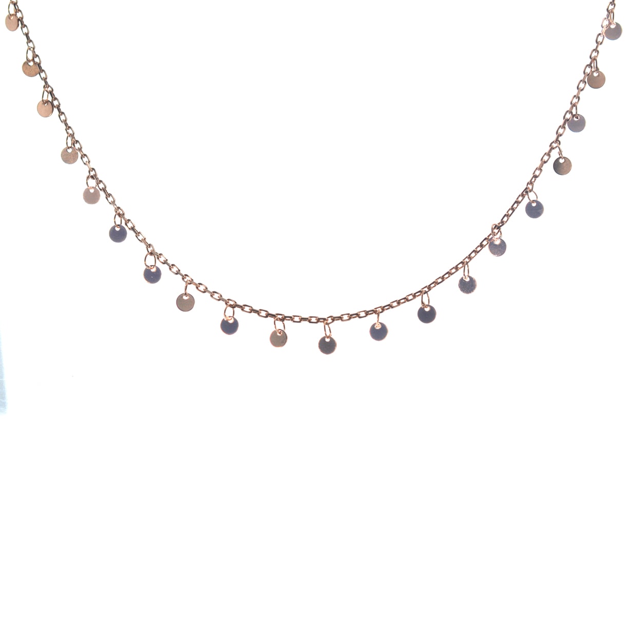 Ασημένιο 925 κολιέ με διακριτικά στοιχεία σε ροζ χρυσό. Προσθέστε ένα ιδιαίτερο στυλ στις εμφανίσεις σας με τα μοντέρνα κοσμήματα της συλλογής μας. Η ασημένια 925 αλυσίδα έχει μήκος 45 εκατοστά με επέκταση 5 εκατοστών.