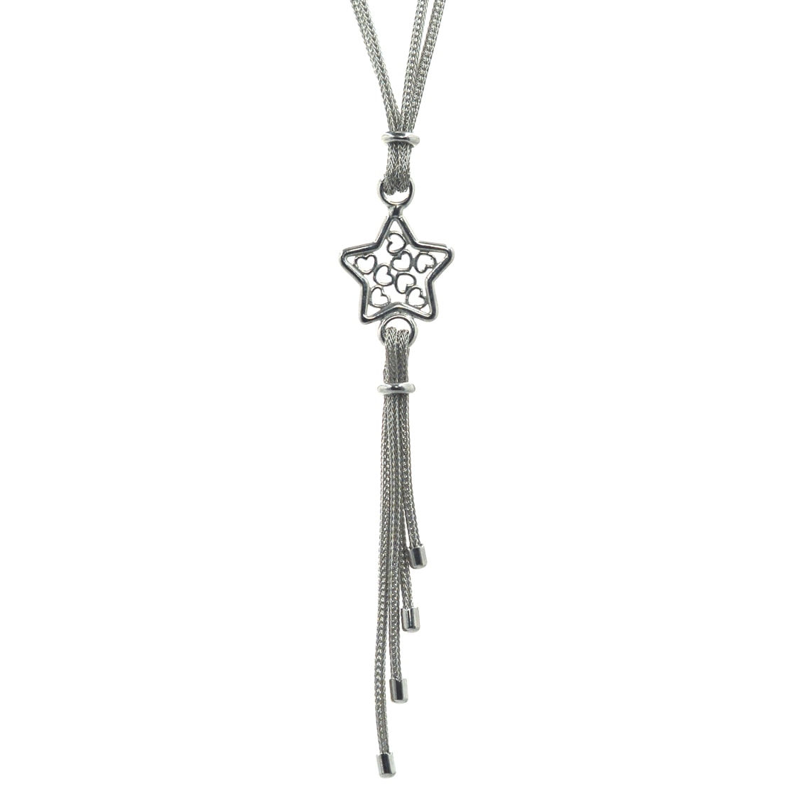 Ασημένιο 925 κολιέ σε σχήμα Υ με διπλή στρώση ροδίωσης. Αλυσιδωτό κολιέ με αστέρι και καρδιές, κατάλληλο για κάθε περίσταση. Αυτό το κόσμημα είναι το ιδανικό δώρο για εσάς ή κάποιο αγαπημένο σας πρόσωπο.