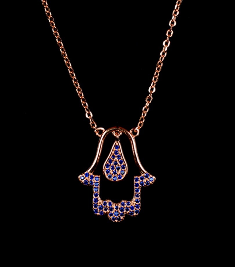 Ασημένιο 925 διακριτικό ροζ χρυσό κολιέ χέρι της φατιμά με ζιργκόν πέτρες και με επέκταση αλυδίδας 5 εκατοστών! Ευκολοφόρετo κολιέ για καθημερινή χρήση με μοντέρνο σχεδιασμό!