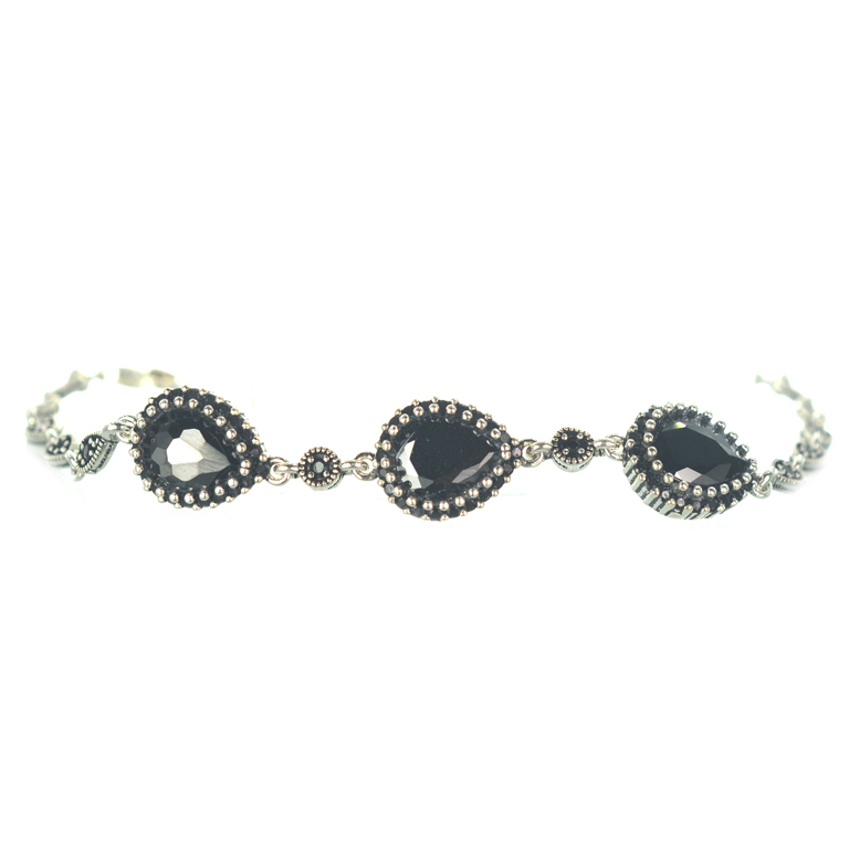 Ασημένιο 925 μαρκασίτη βραχιόλι με μαύρες ζιργκόν σταγόνες. Εντυπωσιακό βραχιόλι με καρφωμένους μαρκασίτες στο σχέδιο του. Μήκος βραχιολιού 18 εκατοστών με επέκταση 5 εκατοστών.