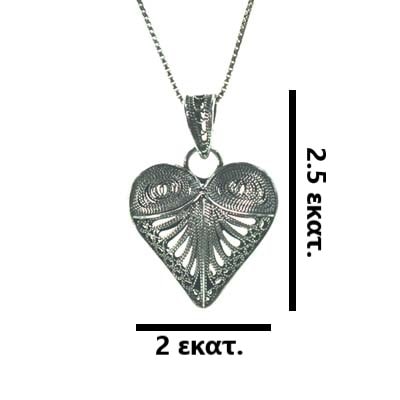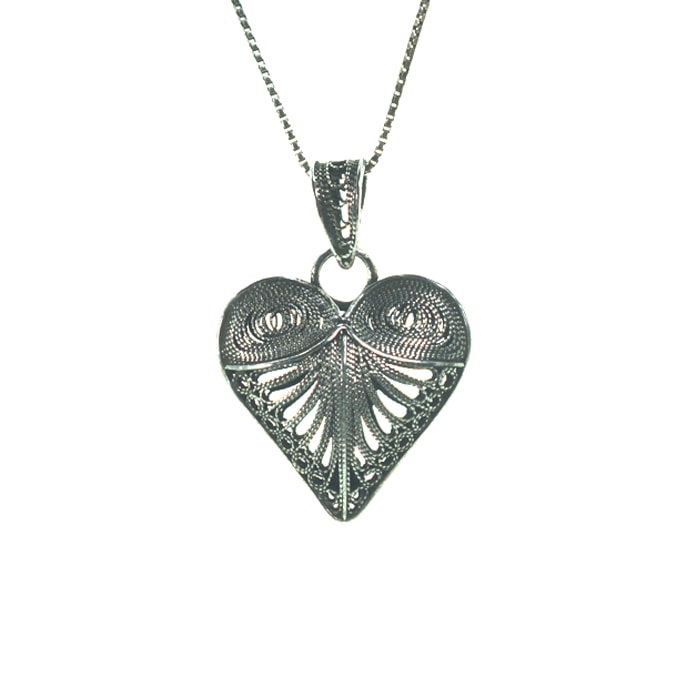 Ασημένιο 925 μενταγιόν καρδιά με υψηλή τεχνική φιλιγκράν. Χειροποίητο μενταγιόν σε σχήμα καρδιάς από οξειδωμένο ασήμι 925, για μία ρομαντική νότα στις εμφανίσεις σας. Ανακαλύψτε σήμερα όλη τη συλλογή και κάνετε το ομορφότερο δώρο στον εαυτό σας ή τον βαλεντίνο σας! *Κάντε κλικ στην επιλογή “με αλυσίδα” και πάρτε μαζί και την αλυσίδα 50 εκατοστών (45 εκατοστά + 5 εκατοστά επέκταση).