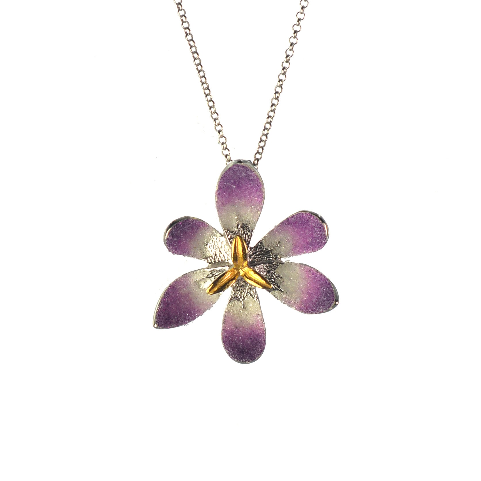 Ασημένιο 925 μενταγιόν λουλούδι με μωβ νανοκρύσταλλα και επίχρυση λεπτομέρεια στο κέντρο, από τη συλλογή ΑΝΟΙΞΗ. Σε σχεδιασμό και παραγωγή της Cyttaro Alternative Jewellery, η συλλογή περιλαμβάνει μοντέρνα χειροποίητα κοσμήματα από ασήμι 925. Ανακαλύψτε όλη τη συλλογή στην ιστοσελίδα μας και κάντε το ομορφότερο δώρο στον εαυτό σας.
