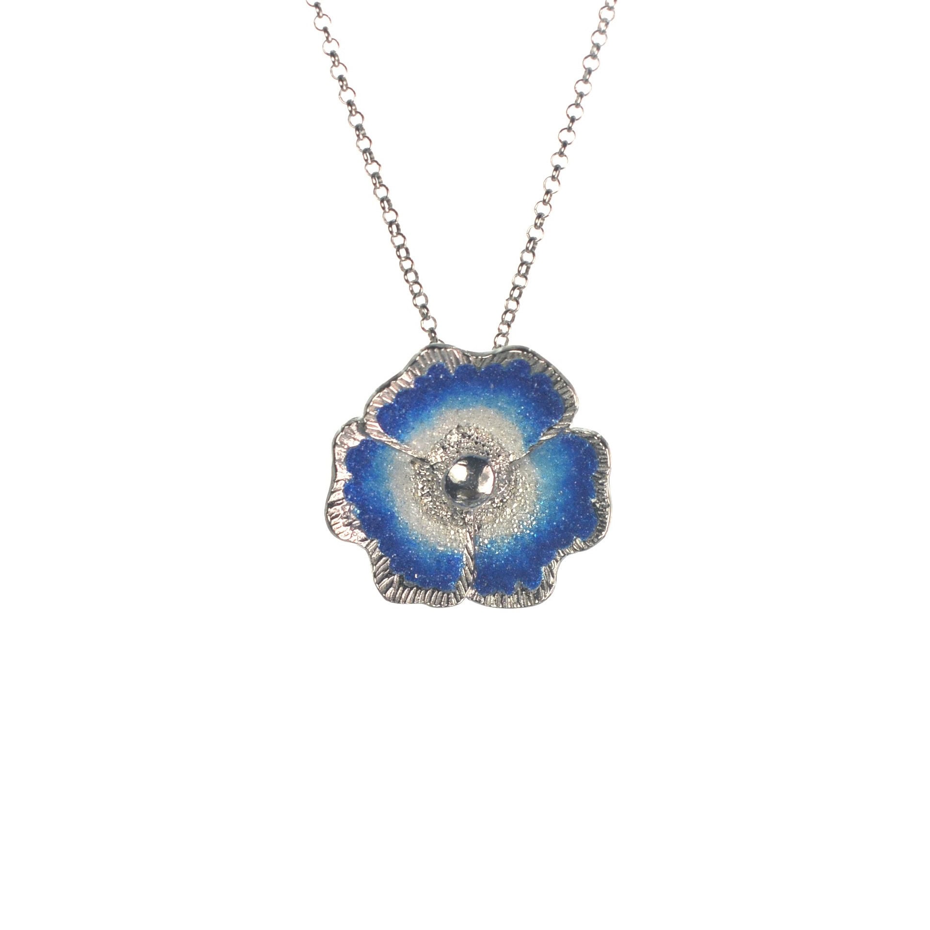 Ασημένιο 925 μενταγιόν λουλούδι με μπλε νανοκρύσταλλα, από τη συλλογή ΑΝΟΙΞΗ. Σε σχεδιασμό και παραγωγή της Cyttaro Alternative Jewellery, η συλλογή περιλαμβάνει μοντέρνα χειροποίητα κοσμήματα από ασήμι 925. Ανακαλύψτε όλη τη συλλογή στην ιστοσελίδα μας και κάντε το ομορφότερο δώρο στον εαυτό σας.
